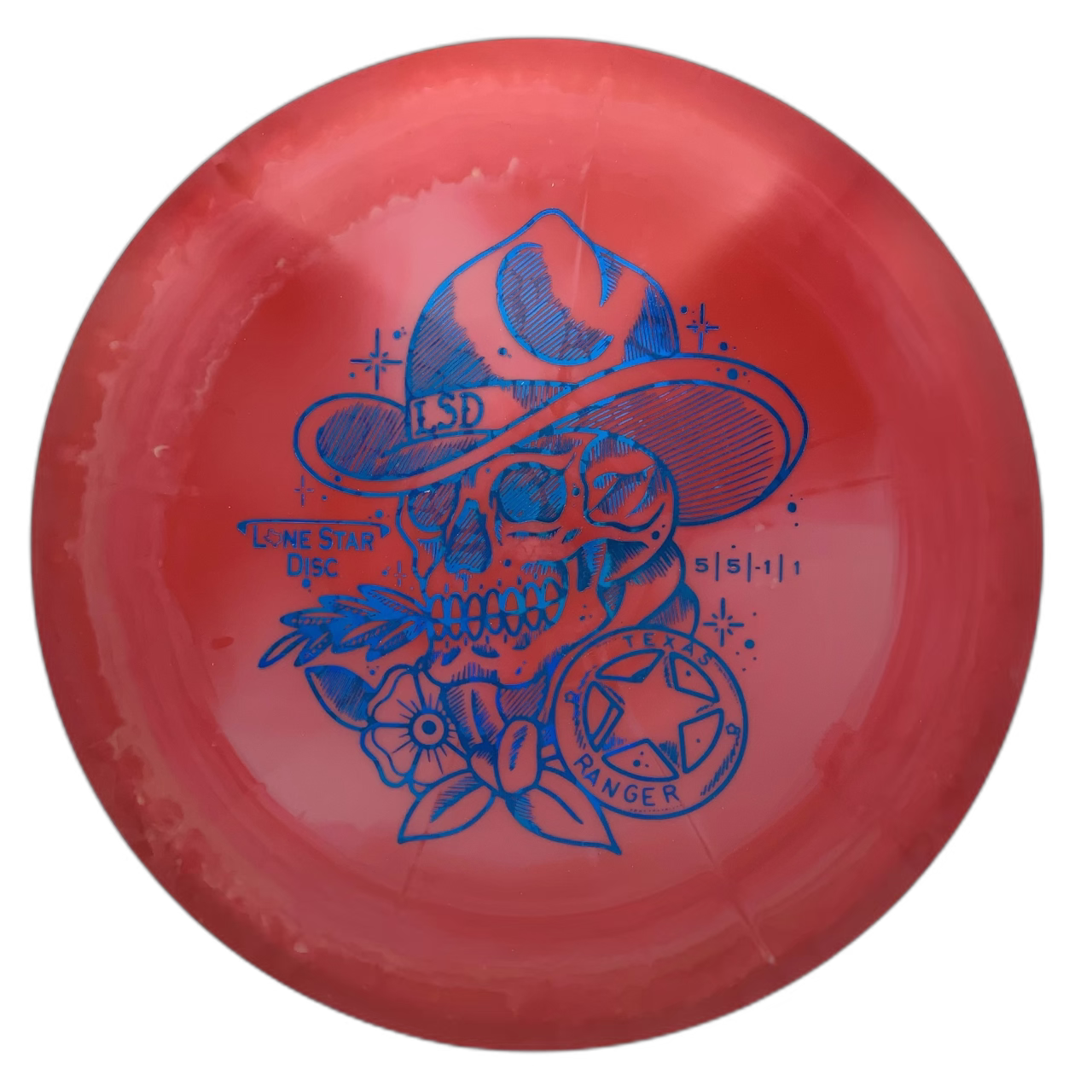 The Lone Star Texas Ranger is the midrange for everyone! It features a comfortable wing profile for forehand or backhand and is true to its flight numbers no matter how far you throw it! This disc will fly straight with a slow turn and a reliable fade at the end of its flight. 5 | 5 | -1 | 1